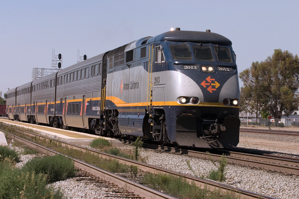 AMTK 2013 Leads a Southbound Capitol Service Train Through Santa Clara, CA