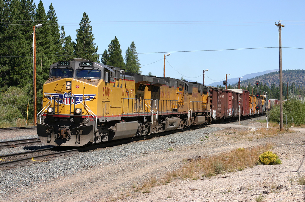 UP5708 rolls South from Black Butte Yard - Shasta Route, CA