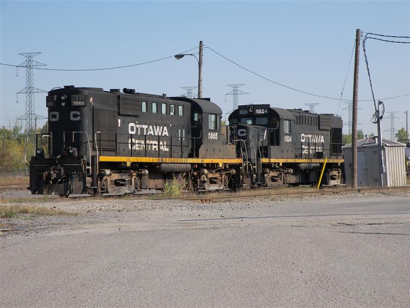 Former CP Rail RS18u's rests outside the shops at the Ottawa Central's Wakely Yard connected nose to nose.