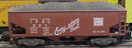 499/21571 New Haven (GE) Electric Locomotive 985/24043 Boston & Maine Box 958/24316 Mobilgas Tank Car 911/24109 Chesapeake & Ohio Gondola 920 Southern Gondola 921/24206 C B & Q Hopper car 935/24619 New Modern Railroad DeLuxe Caboose |