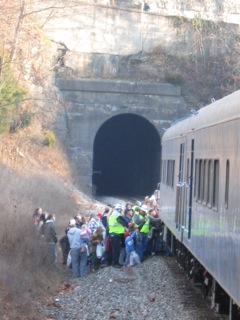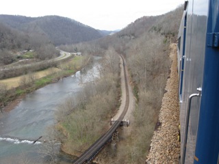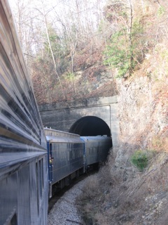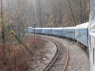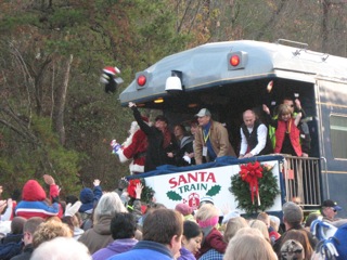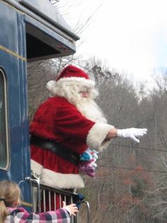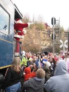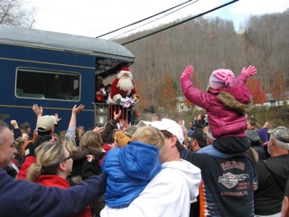 ![]() The Santa Train begins to round a curve as it continues its journey across southwestern Virginia. |