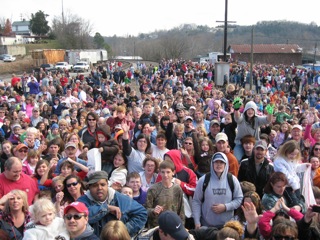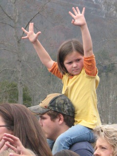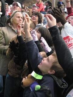 ![]() Wynonna Judd tosses a stuffed animal to a lucky child at Elkhorn City, KY. |