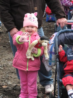 ![]() Fathers' shoulders are a favorite perch as seen at Haysi. |