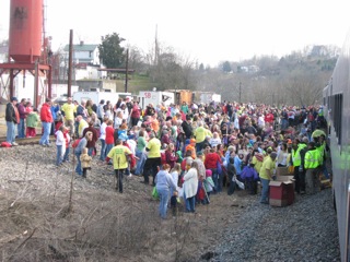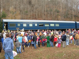 ![]() The Santa Train prepares to stop for a couple hundred kids in Fort Blackmore. (Photo by William Pierson). |