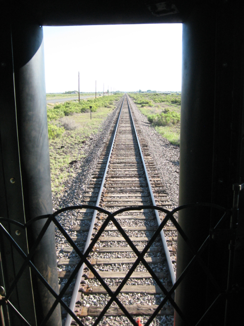 The rail line offers views of mountains and valleys west of Lava Tank.