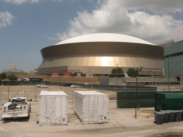 The Louisiana Superdome can be seen as the train departs New Orleans Union Passenger Terminal