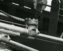 A close up view of Ice Cutters mounted on a Knuckle Braced machine. From the collection of John C. LaRue Jr.