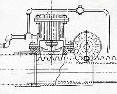 | Side view diagram of the pneumatic brace lock with gear assembly. |