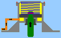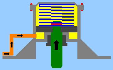 movement is controlled by a downward acting cylinder on early pneumatic machines, or an upward acting one on later models. The Type A machine used a