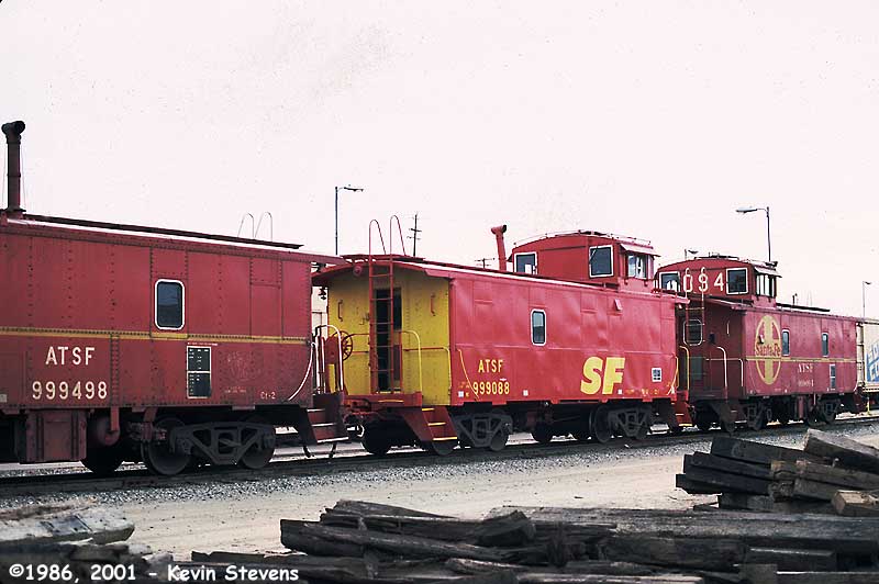Back in 1986, the caboose was still regularly used. For that reason, a couple of examples ended up in the image of the new merged railroad. One Santa Fe example rests in Bakersfield between normally painted Santa Fe waycars waiting for their next assignments.