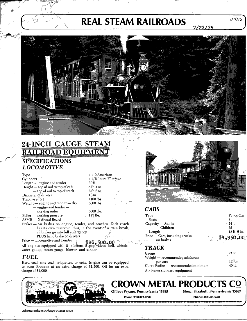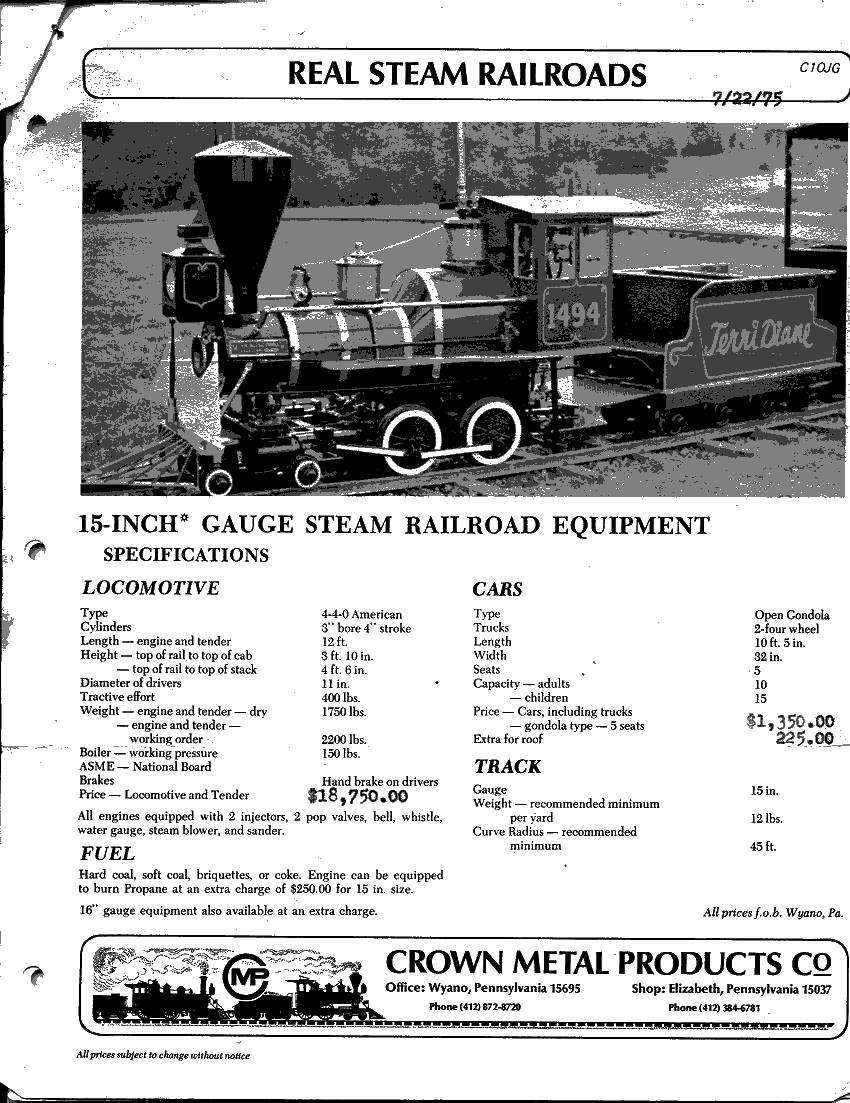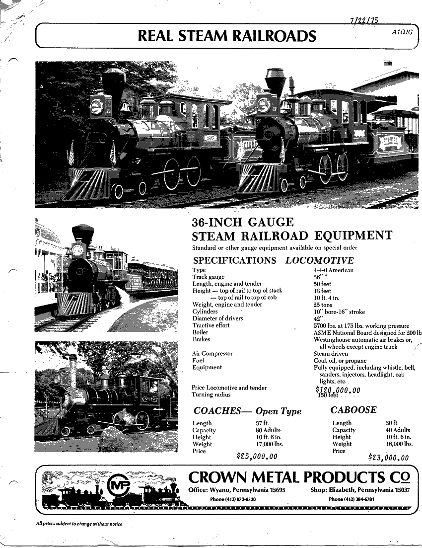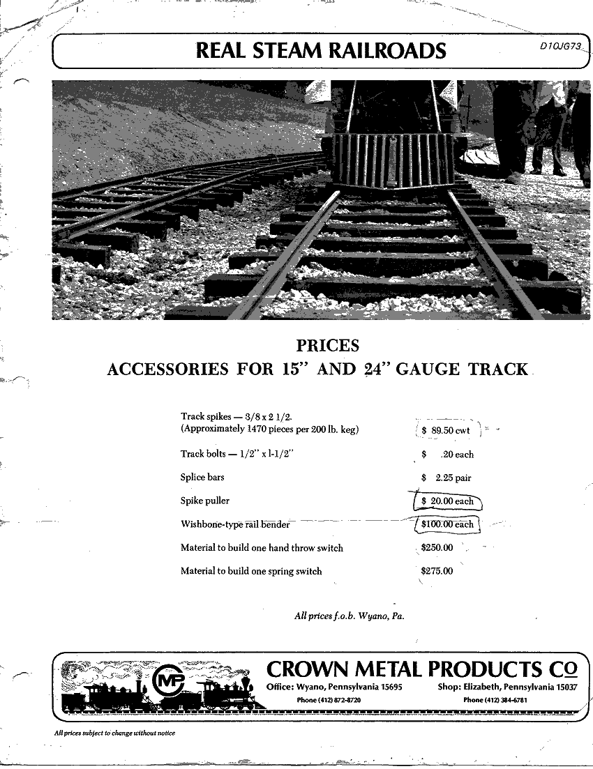 My brother has I think a 1987 Crown catalog and the prices sure did go up in 12 years! I think the 36" gauge loco was about $275,000 by 1987, imagine what it would cost today!