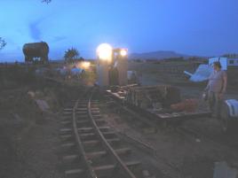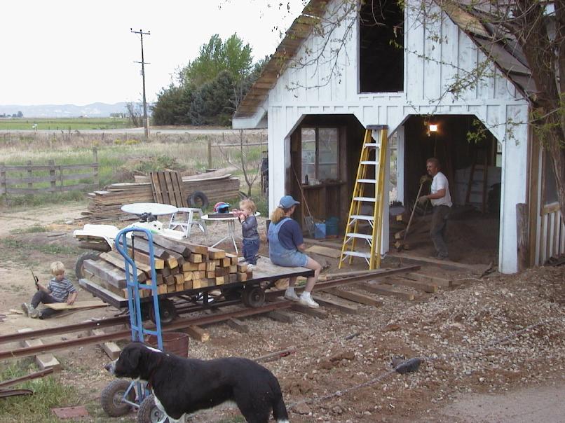 Of course, you can't have all work and no play, so we take regular 'train ride breaks'. In this little movie, most of the gang is riding the train up to the corral in the hazy evening of a late spring. The movie will play when page is finished loading.