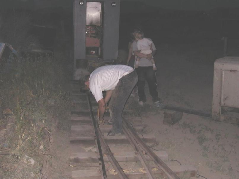 Through a herculean effort by Rollie and his family this project was completed. About all I did was take pictures, but chroniclers are needed too I guess. It was a long week and a long day and of course all had to get up and get to work the next day, but it was worth it. This was a major step in making it a real operating railroad!