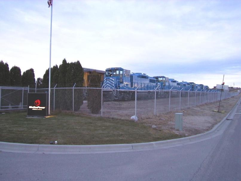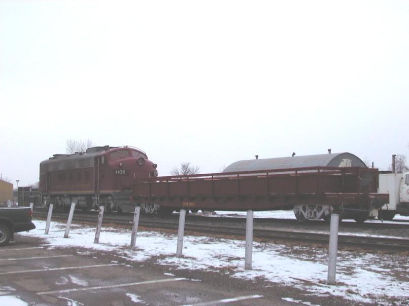 12/29 This F-10 is known as a 'smoker': Oil buildup in the exhaust at idle makes it unpleasent on the passenger train with open cars (being covered in soot is maybe too much like the old steam days!) so the IN&P's regular motive power is currently being used on the Thunder Mountain Line. Rumor is that another F-10 is on its way to Idaho to take charge of the excursion. A closeup yeilds a more correct representation of the colors: