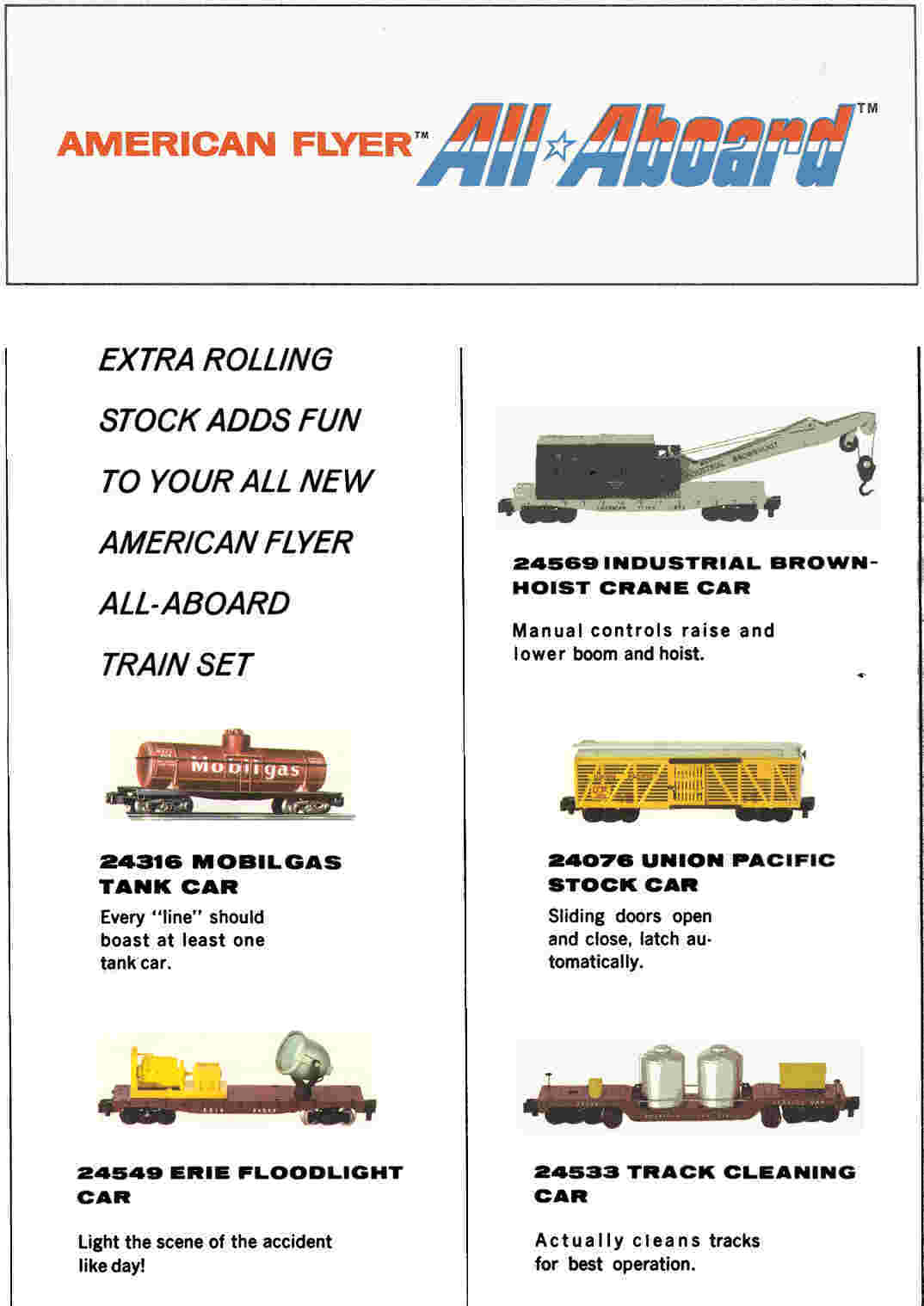 addition to All Aboard, showed the Autorama and James Bond Race Sets, Erector, Chemistry and Science Sets that were available for those years. These are large scans so please allow time for loading.