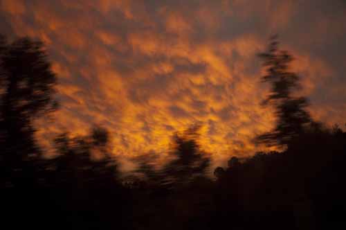 As the sun approaches the horizon, I begin to lose my light for outside-the-window photos, so I set my camera down. I'll bring it to dinner, and see what I can shoot. On this journey we don't have a typical diner car, like those you see on most long-distance trains. Instead we have two cafeteria cars. The seating is a bit different; however, the service is the same. I talked to one of the diner-car attendants, and she said that after the switchover in San Antonio, we'll drop these cars and go back to typical Superliner diner cars. Well, I think that I'll work on organizing my room for the rest of the journey... see you at dinner. Dinner on the Texas Eagle Dinner consisted of three pieces of chicken with rice pilaf. I had ice tea for a drink, and I turned down dessert. Considering that they had all kinds of goodies (cheesecake, ice cream, pie), I think that I did pretty good. My dinner companions were on their way to Oklahoma to visit their son, and be at his wedding. The evening wasn't that exciting. I played about with my computer, and did some writing. After a bit I got bored and went to bed around 10:00PM. I was lulled to sleep by the gentle rocking motion of the train, and the mournful whistle of the engine. Day 2 on the Texas Eagle I wake up at 5:00AM, and grab a cup of coffee from the service area. I'm not sure what time Brad (our car attendant) gets up, but the coffee is fresh and ready. About 5:15AM we pull into Texarkana; which means that I slept through all the Arkansas stops... Hey, I'm not planning on staying awake twenty-four/seven. Anyway we were not supposed to be in Texarkana until 5:58AM. So we've been sitting here cooling our heals for the last forty-five minutes; then at 5:58AM, I hear the engine whistle, and we're back on track (pun intended). If an Amtrak train is late, there's not much they can do about it; except try to make up the time. If, however, the train is running early, they'll stop every so often and wait until they're back on time. Breakfast begins at 6:30AM, with no reservations required. Since my experience is that most people wait a bit before eating, my plan is to hit the diner car when it first opens. We'll see how many early risers we have on the Texas Eagle. Currently, it's 6:05AM, so twenty-five minutes to go. Well, we pulled out of Texarkana, just a few minutes ago, and now we're stopped again. It's not really that big of a deal; it's almost time for breakfast, and it's so dark outside that my bedroom window might as well be a piece of black glass. I had one cool experience last night. I woke up about 2:30AM and peered out my window. There, framed like a perfect photograph, was the constellation Orion (the hunter). It must have been a pretty clear night because I could even see a bit of the Milky Way... Then I went back to sleep. A freight train is currently passing us on the adjoining track, so I assume that's probably why we're stopped. Except for the North-East Corridor, Amtrak does not own any of the tracks they travel on. So we have to share them with the freight haulers. Amtrak is supposed to get priority on the tracks; however, in years past that seldom happened. The results were that Amtrak trains had a dismal record when it came to on-time arrivals. Now, it seems that things have changed, and that Amtrak is getting the priority they deserve. The results now are that Amtrak trains have an excellent on-time record. Well, as soon as the freight train passed, we got under way. Even with priority status, Amtrak will still have to occasionally pull over and let another train pass. Breakfast Breakfast consisted of a cheese omelet with grits. Dan, the person I was eating breakfast with had the same thing with one big difference. His omelet was shaped exactly like North America... including Florida, and Maine. I kid you not. We talked about putting it on eBay and seeing what we could get for it. I was going to take a picture; however, Dan ate Florida, before I could pick up my camera... he was really hungry. To sum it up, breakfast was excellent, and our server, Carol, was great. One thing about Amtrak, you won't ever complain about the portions, they're huge. And if you're in a sleeper, the price is right... FREE! Back in my Room I get back to my room, just in time to shoot some photos of the colorful sunrise over Marshall, Texas. Then five minutes later, the colors fade and it's over. Sometimes you've got to be quick to capture that image.