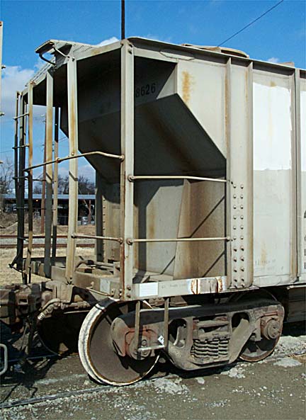 KRR 438626 3-bay covered hopper Ash Grove Cement, North Little Rock, Ark. End sheet and truck. January 14, 2001