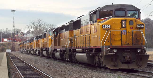 UP 6264 (SD60M) brings up the rear of engine move at Little Rock, Arkansas, January 12, 2003