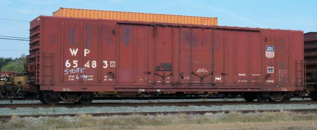 WP 65483 boxcar (UP colors), Pine Bluff, Ark. October 21, 2000.