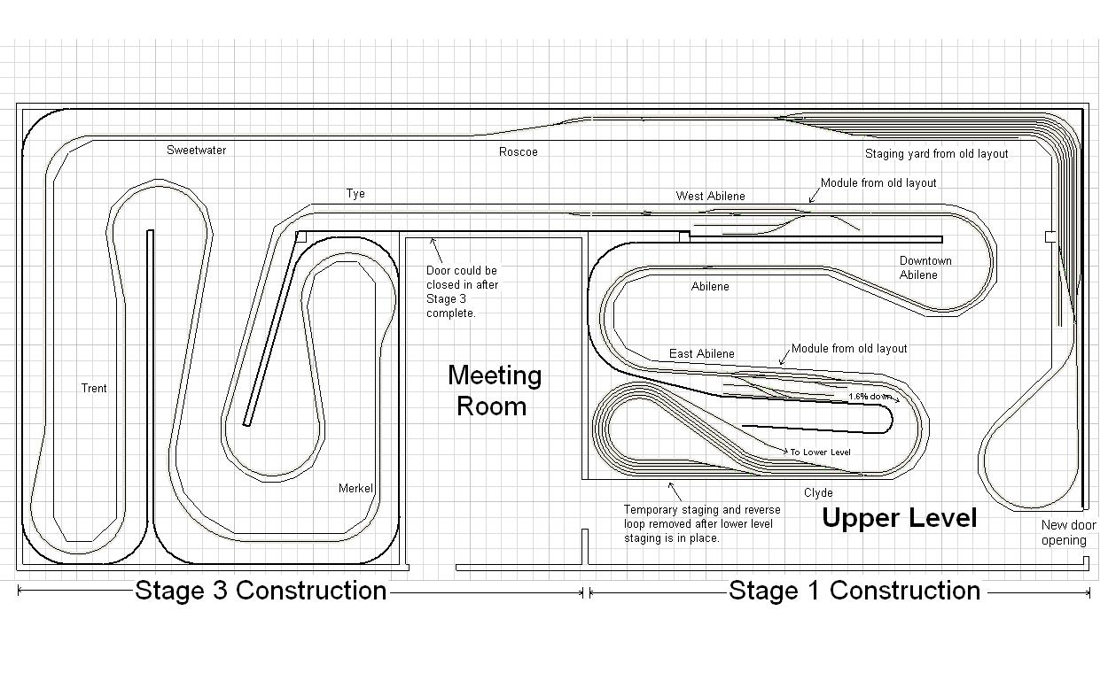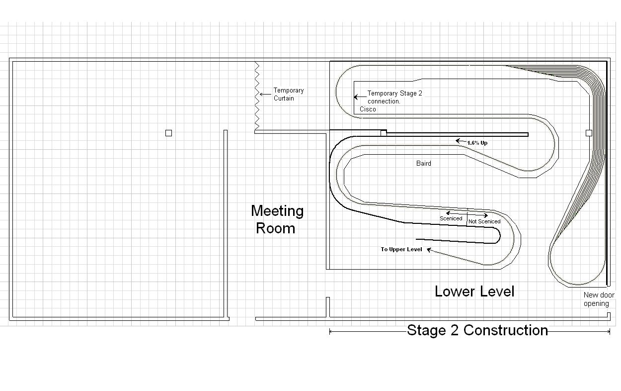 On March 6, 2010 the members voted on adding a 24' x 29' space to the club. The new space along with the current space will house a new layout. The members are currently in the design phase of the new layout. This page will be updated with the new versions of the plan as we make them. Please check back often to see the updates.