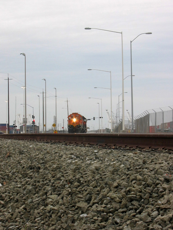 Ever since the Oakland Intermodal Gateway opened, BNSF has become a common sight at the Port. December, 2003.