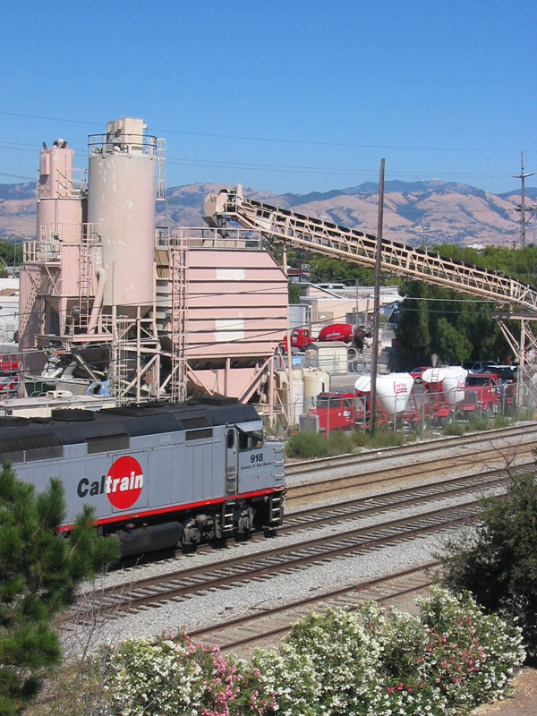 I think it's fairly obvious that I took this picture on the same day and from the same vantage point as my Caltrain/Bellarmine shot. It was a clear day and Central Cement made for a nice background, so here's another Caltrain shot. August, 2004.