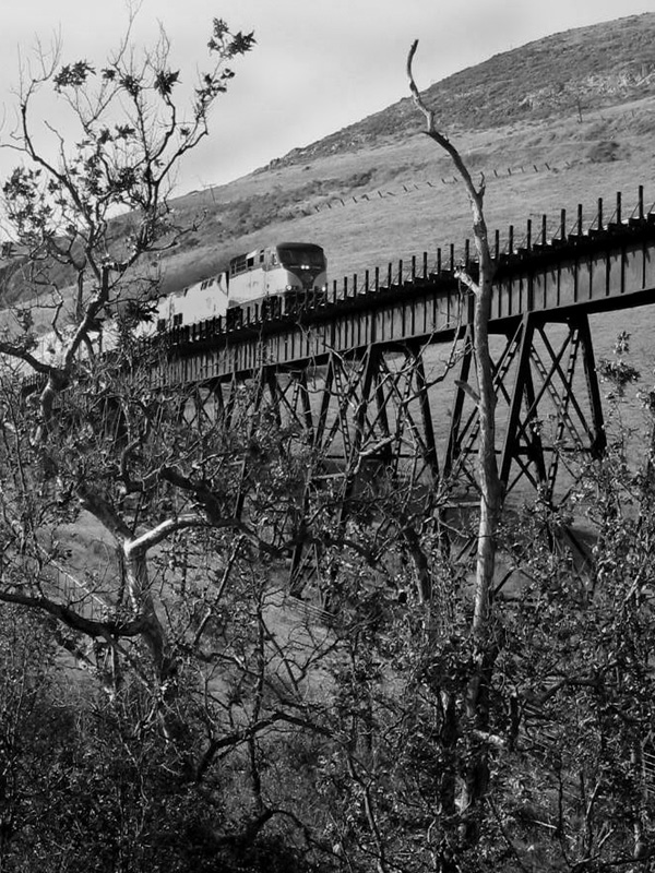 Amtrak 11 soutbond across Stenner Creek. April, 2004.