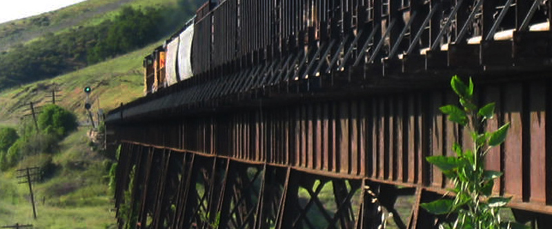 You wouldn't know it from the cars, but this is actually an intermodal train. April, 2004.