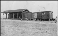 railroad used available materials and constructed a make-shift building from a 36' box car. |