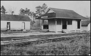 The building contains a small freight holding area and a divided passenger waiting room. The structure was more than