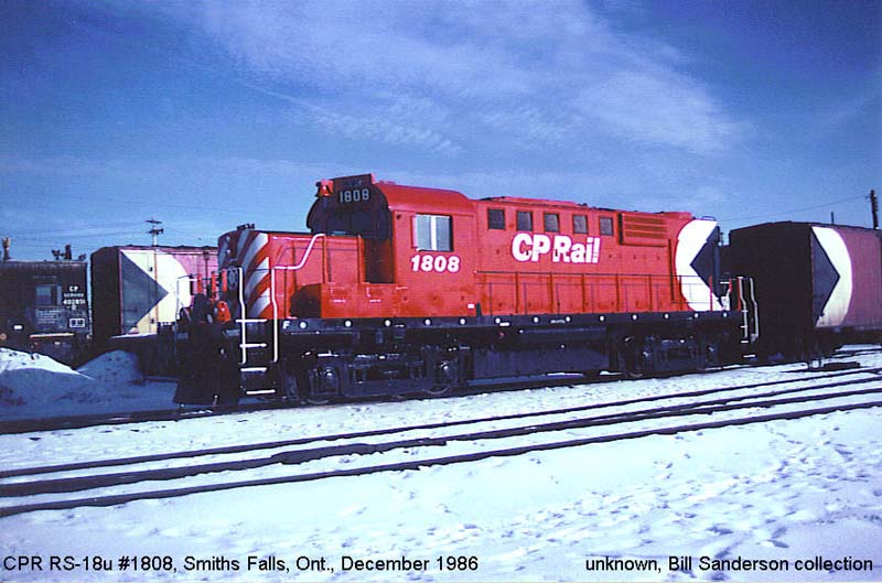Notes : Built by MLW as RS-18 #8730 (1957). Rebuilt by CP as RS18u, chop-nosed and renumbered to #1808 (1981). Retired (10/29/1996). Sold to American Iron, Riviere-des-Prairies, QC. for scrap (8/1997). ___________________________________________________________________________________________