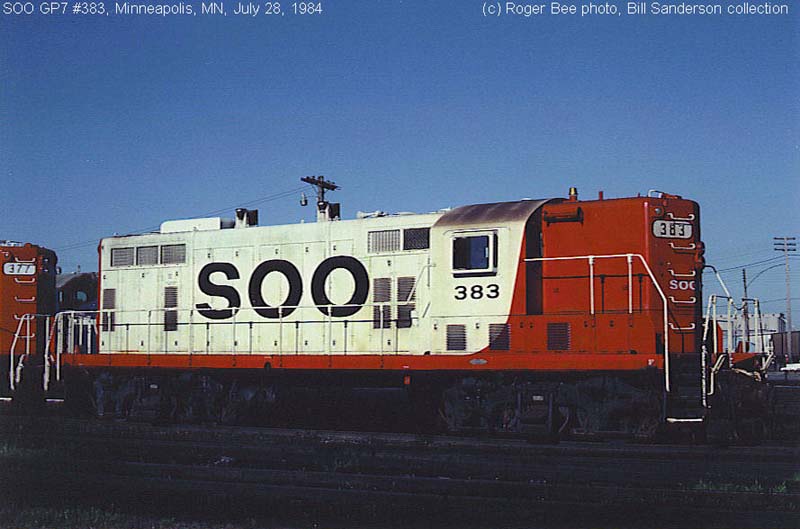 Notes : Built by EMD as MStP&SSM #383 (2/1951). Acquired by SOO Line (12/1960) and renumbered to SOO #383. Sold to Ontario Southland (8/19/1999), became OSRX #383. ___________________________________________________________________________________________
