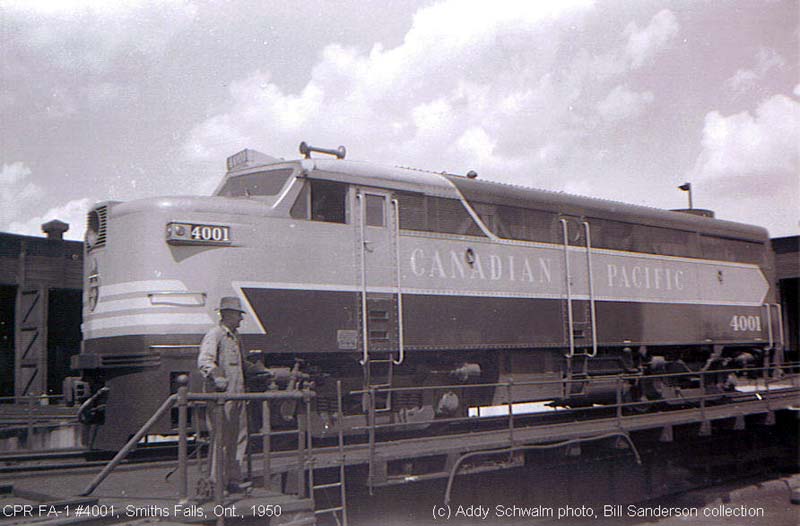 Other Photos (chronological) : 1. CP 4001 at Windsor, ON. painted in the Maroon & Grey "Block" paint scheme. Photographer unknown, 1964. From the Claude Prutton collection.