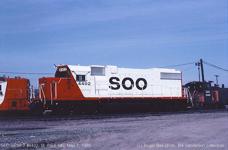 Other Photos (chronological) : 1. SOO 792 at Gladstone, MI., painted in the SOO Red/White paint scheme. Photo by J.H. Wilson, 1978. From the E.D. Motis collection; 2. SOO 4402 at Schiller Park, IL., painted in the SOO Red/White paint scheme. Photo by Michael Hoff, 1979. From the Bill Sanderson collection.