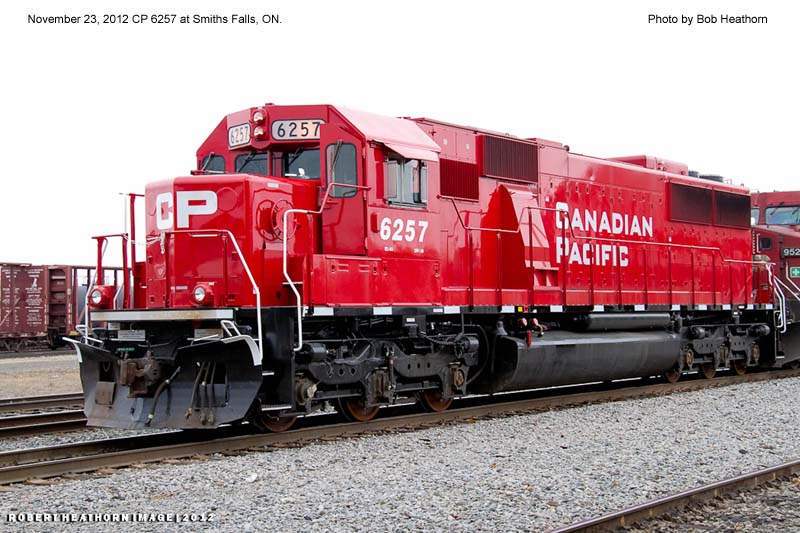 Notes : Built by GMD as SOO #6057 (1989). Overhauled, repainted and renumbered to CP #6257 at CAD Rail, Montreal, QC. (8/31/2012). ___________________________________________________________________________________________