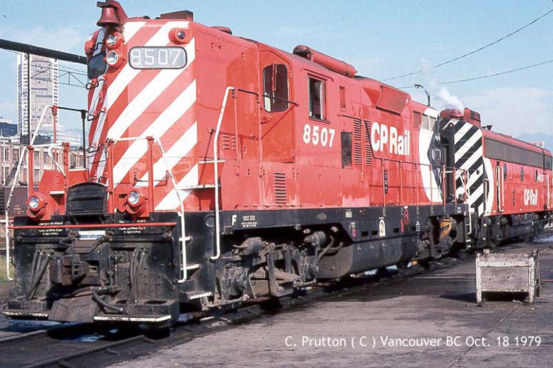 Other Photos (chronological) : 1. CP 8507 at Alyth, Calgary AB., painted in the Maroon & Grey "Block" paint scheme. Photo by Bob Loat, 1965. From the Bill Sanderson collection; 2. CP 8507 at Sudbury, ON., painted in the CP Rail Large Multimark paint scheme. Photo by G.D Marson, 1975. From the Bill Sanderson collection; 3. CP 1556 at Thunder Bay, ON., painted in the CP Rail System paint scheme. Photo by Mark Boesche, 2004.