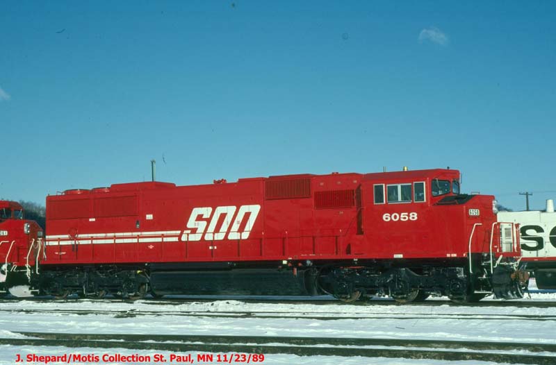 Built by : GMD Delivered in : 1989 Serial Number : 886055-1 Class : N/A Paint Scheme : SOO Red This Photo : J. Shepard, 1989. From the E.D. Motis collection.