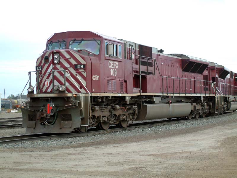 Other Photos (chronological) : 1. CEFX 109 at Port Coquitlam, B.C., painted in the CEFX Maroon/Grey paint scheme. Photo by Mark Forseille, 2007.