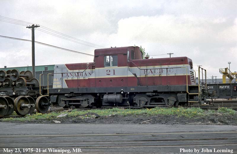 Other Photos (chronological) : 1. CP 21 at Winnipeg, MB., painted in the Maroon & Grey "Block" paint scheme. Photographer and date unknown. From the Bill Sanderson collection; 2. CP 21 at Winnipeg, MB., painted in the Maroon & Grey "Block" paint scheme. Photo by Bruce Chapman, 1974. From the Bill Sanderson collection; 3. CP 21 at Winnipeg, MB., painted in the Maroon & Grey "Block" paint scheme. Photo by John Leeming, 1975.