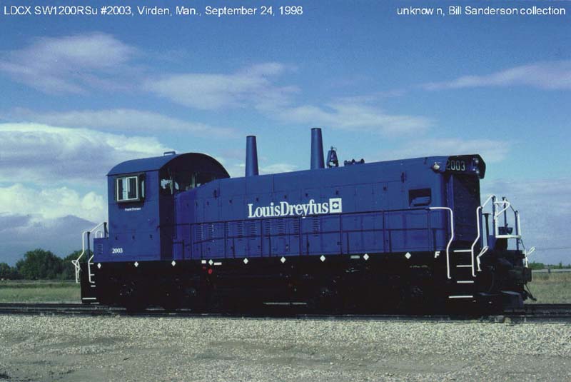 Notes : Built by GMD as SW1200RS #8157 (1960). Rebuilt by CP as SW1200RSu and renumbered to #1243 (1982). Sold to Louis Dreyfus Corp. (8/28/1998). Renumbered to LDCX #2003, and assigned to Virden, MB. ___________________________________________________________________________________________