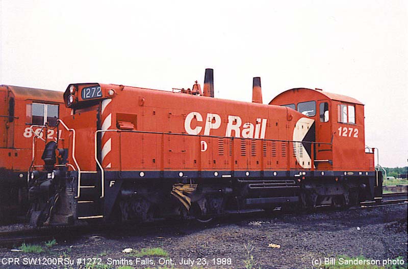 Other Photos (chronological) : 1. CP 8116 at Toronto, ON., painted in the CP Rail Multimark paint scheme. Photo by Bill Sanderson, 1983; 2. CP 1272 at Montreal, QC., painted in the CP Rail Multimark paint scheme. Photo by Ross Harrison, 1988. From the Bill Sanderson collection; 2. CP 1023 at Toronto, ON., converted to Slug #1023, painted in the CP Rail Multimark paint scheme. Photo by Bill Sanderson, 1996.