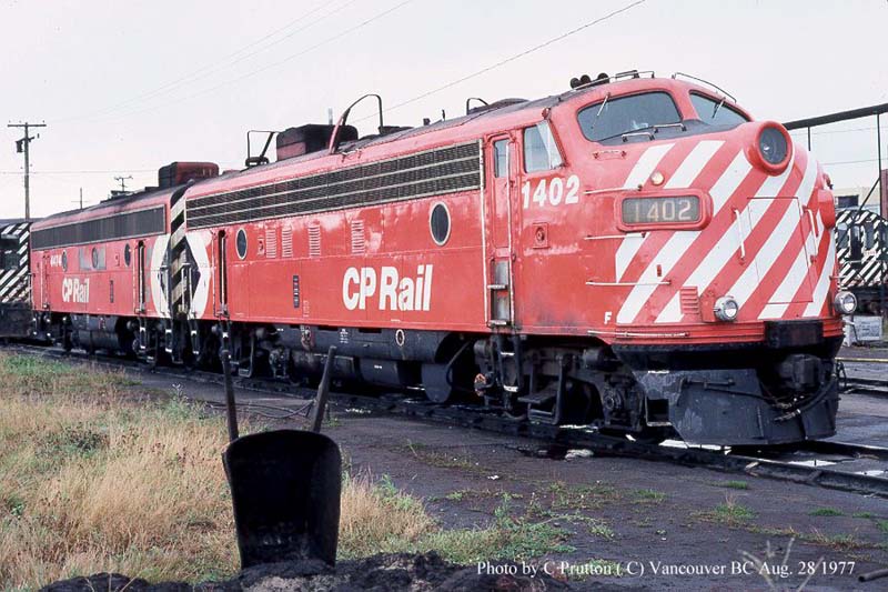 4. CP 1402 at Montreal, QC., painted in the CP Rail Small Multimark paint scheme. Photo by Ron Visockis, 1972. From the Bill Sanderson collection;