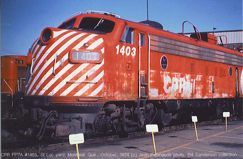 4. CP 1403 at Montreal, QC., painted in the CP Rail Small Multimark paint scheme. Photo by Jean Patenaude, 1974. From the Bill Sanderson collection;