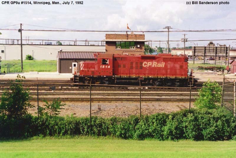 Notes : Built by GMD as GP9 #8627 (1956). Rebuilt by CP as GP9u, chop-nosed and renumbered to #1514 (1980). Equipped with CANAC remote control 'beltpack' equipment. Retired (5/17/2012). Sent to SRY, New Westminster B.C., for parts salvage and scrapping. ___________________________________________________________________________________________