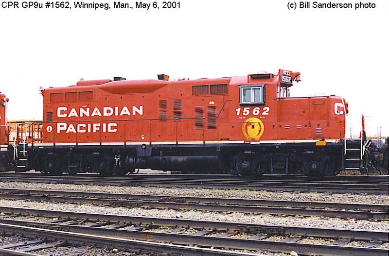 Notes : Built by GMD as GP9 #8537 (1955). Rebuilt by CP as GP9u, chop-nosed and renumbered to #1562 (1983). Equipped with CANAC remote control 'beltpack' equipment. Retired (2/13/2014). ___________________________________________________________________________________________
