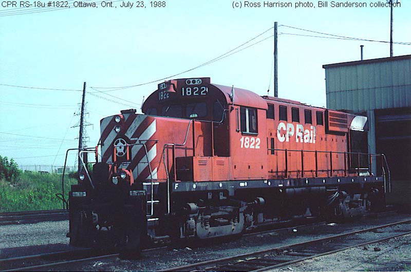Other Photos (chronological) : 1. CP 8779 at Montreal, QC., painted in the CP Rail Large Multimark paint scheme. Photo by Jean Patenaude, 1974. From the Bill Sanderson collection; 2. CP 1822 at Ottawa ON., painted in the CP Rail Large Multimark paint scheme. Photo by Ross Harrison, 1988. From the Bill Sanderson collection; 3. CVSX 1822 at Pleasant Valley, OH., painted for Cuyahoga Valley Scenic Railway. Photo by John L Horton, 2005. From the Bill Sanderson collection.