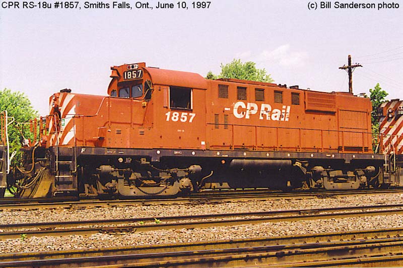 Other Photos (chronological) : 1. CP 8766 at Fredericton, NB., painted in the CP Rail Large Multimark paint scheme. Photo from the E.D. Motis collection, 1983; 2. CP 1857 at Smiths Falls, ON., painted in the CP Rail no-Multimark paint scheme. Photo by Bill Sanderson, 1989; 3. NBEC 1857 at Campbelllton, NB., painted for New Brunswick East Coast Railway. Photo by David T. Stowe, 1998. From the Bill Sanderson collection.