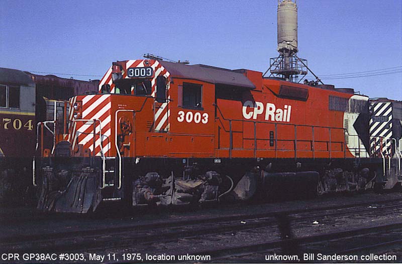 Other Photos (chronological) : 1. CP 3003, painted in the CP Rail Large Multimark paint scheme. Photographer and location unknown, 1975. From the Bill Sanderson collection; 2. CP 3003 at Port Coquitlam, B.C., painted in the CP Rail Small Multimark paint scheme. Photo by Claude Prutton, 1986; 3. CP 3003 at Port Coquitlam, B.C., painted in the CP Rail Small Multimark paint scheme. Photo by E.D. Motis, 2002; 4. CP 3003 at Port Coquitlam, B.C., painted in the CPR Beaver paint scheme. Photo by Mark Forseille, 2008; 5. CP 3003 at Port Coquitlam, B.C., painted in the CPR Beaver paint scheme. Photo by Mark Forseille, 2008.
