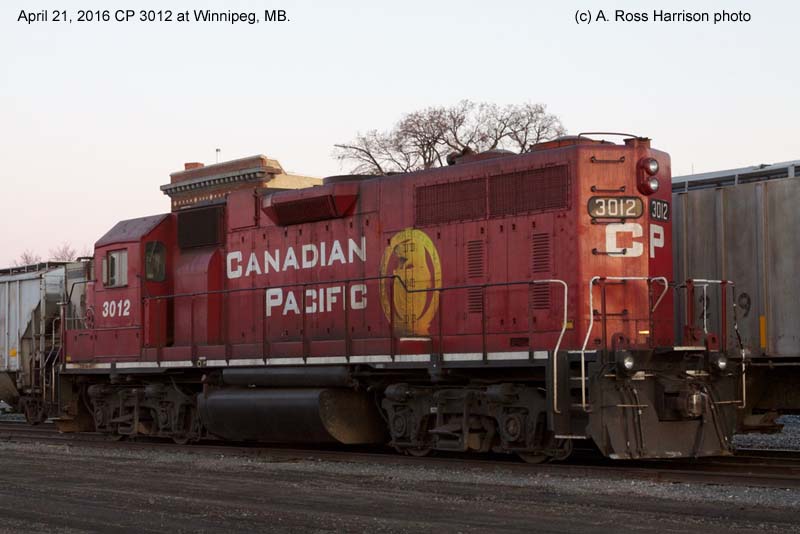 Other Photos (chronological) : 1. CP 3012 at Field, B.C., painted in the CP Rail Large Multimark paint scheme. Photo by D.R. Phillips, 1971. From the Bill Sanderson collection; 2. CP 3012 at Port Coquitlam, B.C., painted in the CP Rail Small Multimark paint scheme. Photo by E.D. Motis, 2002; 3. CP 3012 at Roberts Bank, B.C., painted in the CPR Beaver paint scheme. Photo by Wilco van Schoonhoven, 2006; 4. CP 3012 at Port Coquilam, B.C., painted in the CPR Beaver paint scheme. Photo by Mark Forseille, 2007; 5. CP 3012 at Winnipeg, MB., painted in the CPR Beaver paint scheme. Photo by A. Ross Harrison, 2015; 6. CP 3012 at Winnipeg, MB., painted in the CPR Beaver paint scheme. Photo by A. Ross Harrison, 2015.