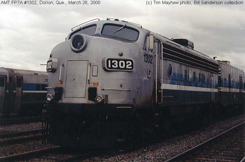 5. AMT 1302 at Dorion, QC., painted for Agence Metropolitaine de Transport (Montreal). Photo by Tim Mayhew, 2000. From the Bill Sanderson collection.